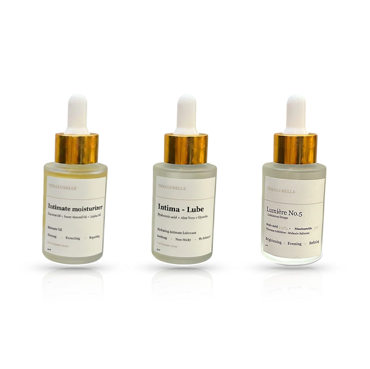 Together, this trio works in harmony to promote hydration, comfort, confidence, and a naturally luminous appearance, making it the perfect daily ritual for intimate self-care.