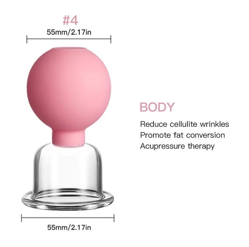 The 4 cm Body Cupping Tool is designed to help improve the appearance of cellulite and loose skin through gentle suction massage. Made from clinical-grade silicone, it is flexible, durable, and safe for repeated use on the body.
